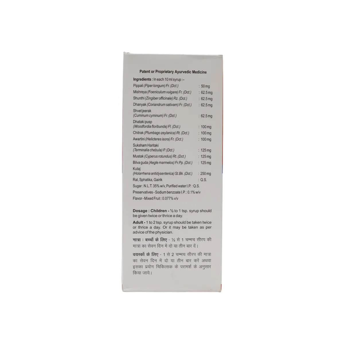 This syrup is effective in Acidity, Gastralgia and Anorexia.