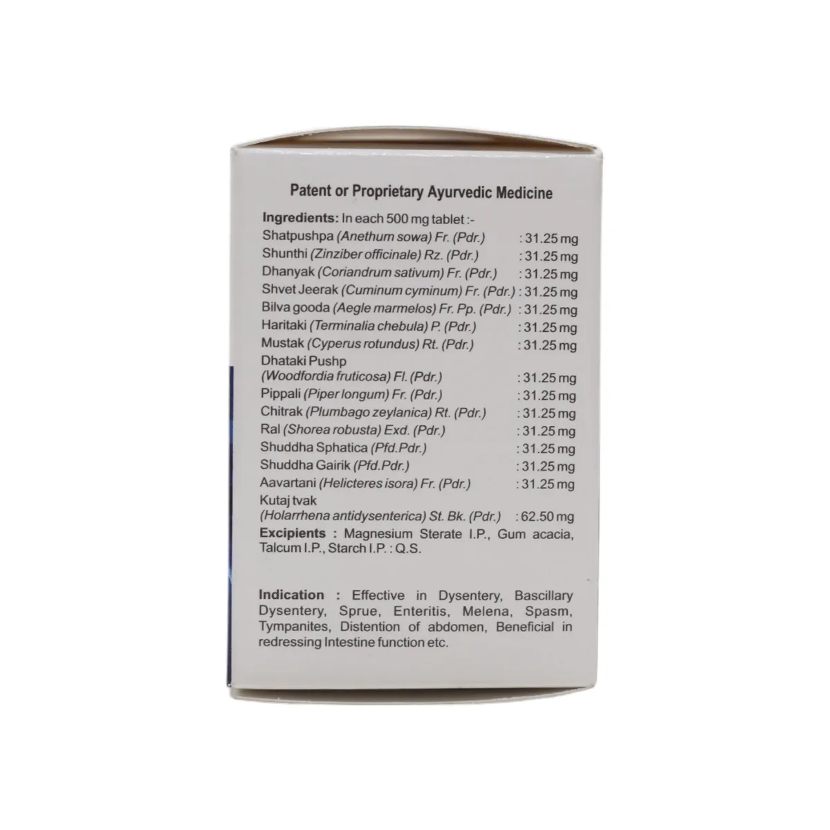 Dosage : A dose of 1 to 2 tablets should be given to the children with water or fresh Butter-Milk thrice a day. A dose of 2 to 3 tablets may be given to the adullts with water or fresh Butter-Milk thrice a day. Or it may be taken as per advice of the physician.