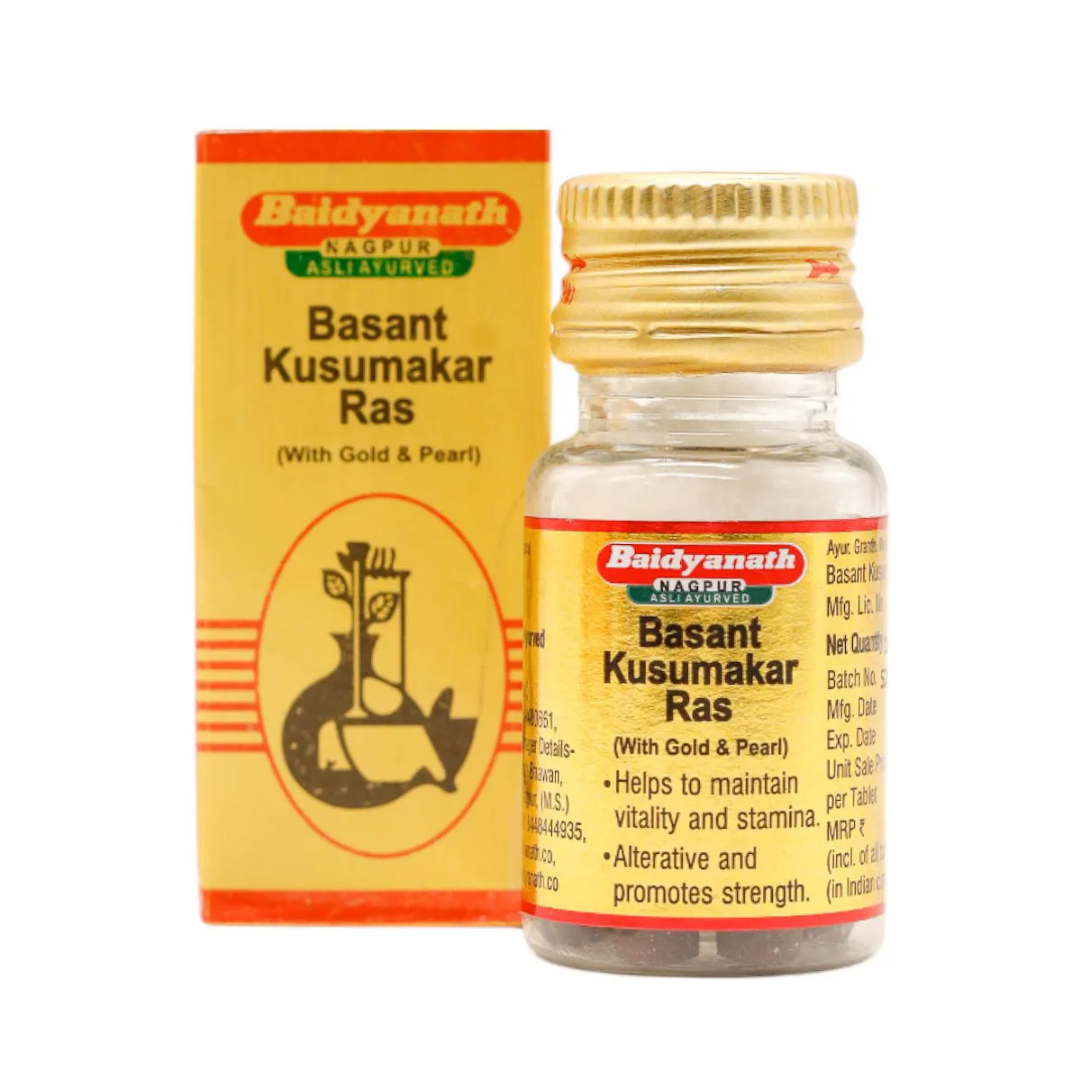 Baidyanath Basant Kusumakar Ras with Gold Tablets is an excellent Ayurvedic solution for the management of high blood sugar levels and diabetes. This product has properties that are effective in protecting the body from various problems such as polyuria caused due to diabetes. It protects and nourishes the body and helps build strength.