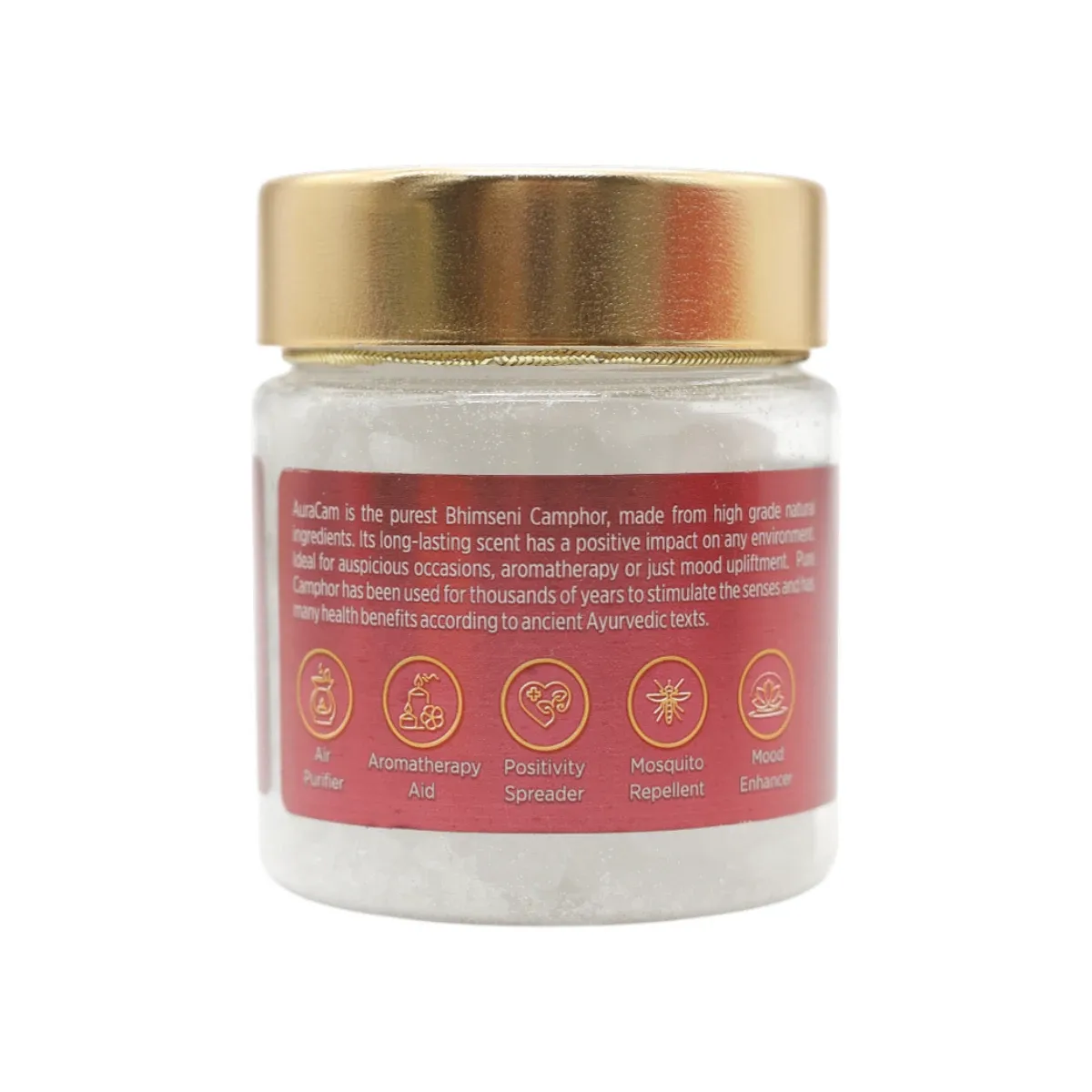 Traditional Healing: Bhimseni camphor has been revered for its holistic healing properties for centuries. It is known to alleviate congestion, purify the air, and promote overall well-being. Its calming aroma can help reduce stress and induce a sense of relaxation.