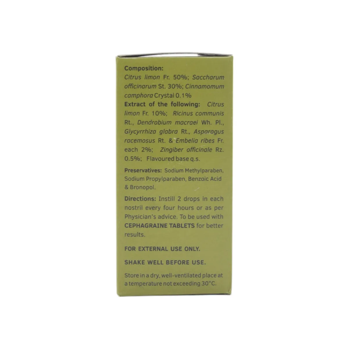In migraine, sinusitis and tension headache, there is involvement of nasal pathway and blood vessels in cranium. Use of Cephagraine Nasal drops with herbs like Jambeeram (Citrus limon) juice, Yashtimadhu (Glycyrrhiza glabra), Shunthi (Zingiber officinale), Vidanga (Embelia ribes) offer Anti-inflammatory, Anti-viral, Anti-bacterial, Decongestant action, regularizes blood flow in cranial blood vessels to offer better relief in Sinusitis, Migraine and headache