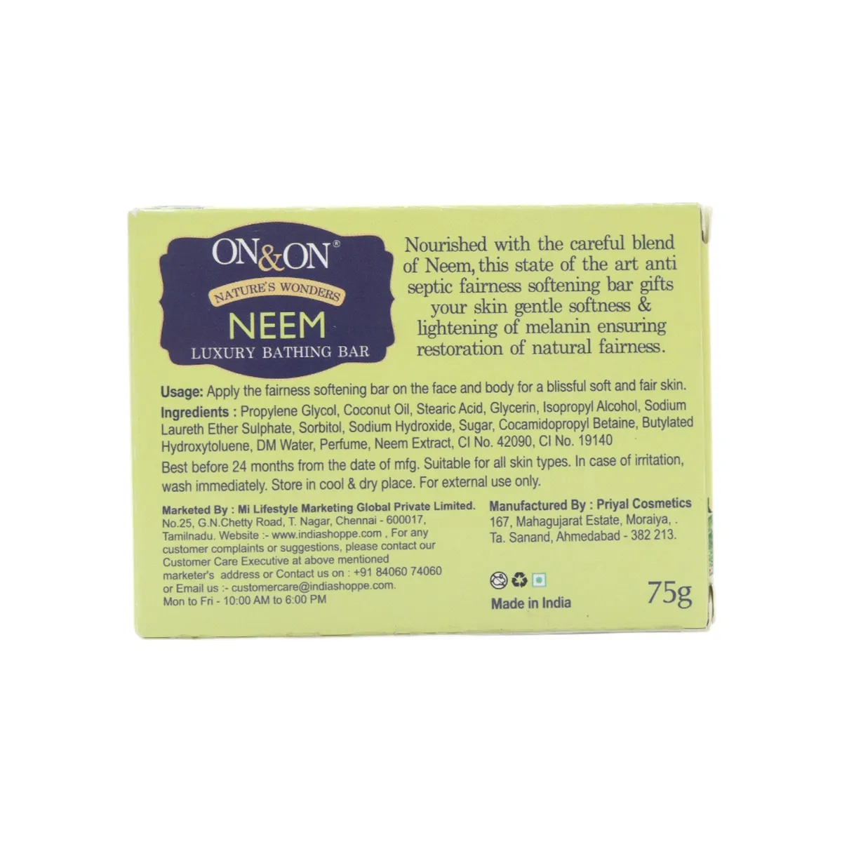 ELEMENTS ON & ON NEEM SOAP – 75 GM