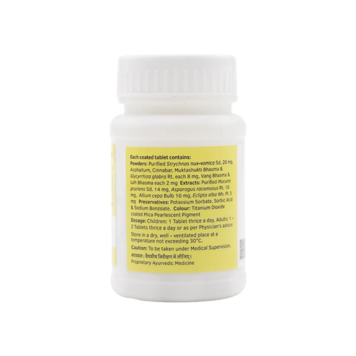 Neo Tablet, a herbomineral formulation, is for overall strength in men. Herbs like Kapikachchhu and Bhringaraj calm the nerve impulses and reduce the excitability. Shatavari and Yastimadhuare useful to reduce psychological causes and serve as adaptogenic support.