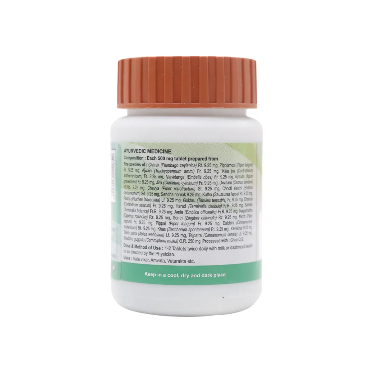 1-2 tablets twice daily with milk or dashmool kwath or as directed by the