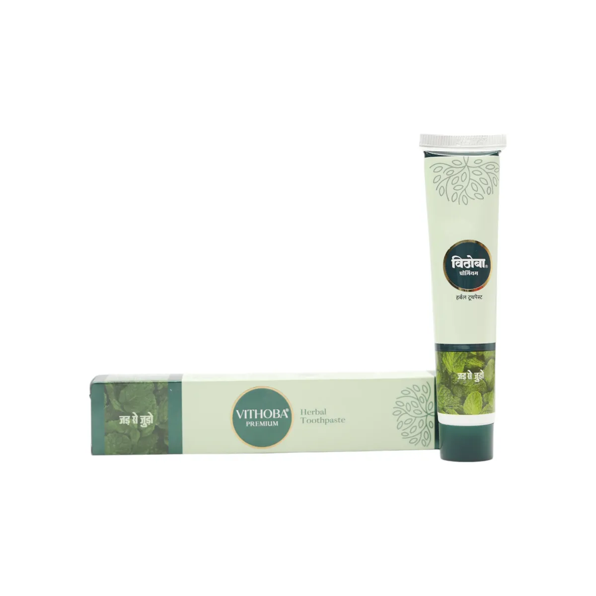 Vithoba Rootfix Ayurvedic Toothpaste is a natural oral care solution formulated with herbal ingredients to address a variety of dental concerns, including bad breath, cavities, and gum health.